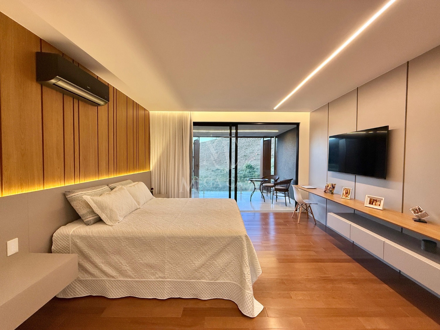 5 Suítes Espaçosas: Cada suíte foi projetada com atenção aos mínimos detalhes, todas equipadas com ar-condicionado, proporcionando máximo conforto e privacidade.