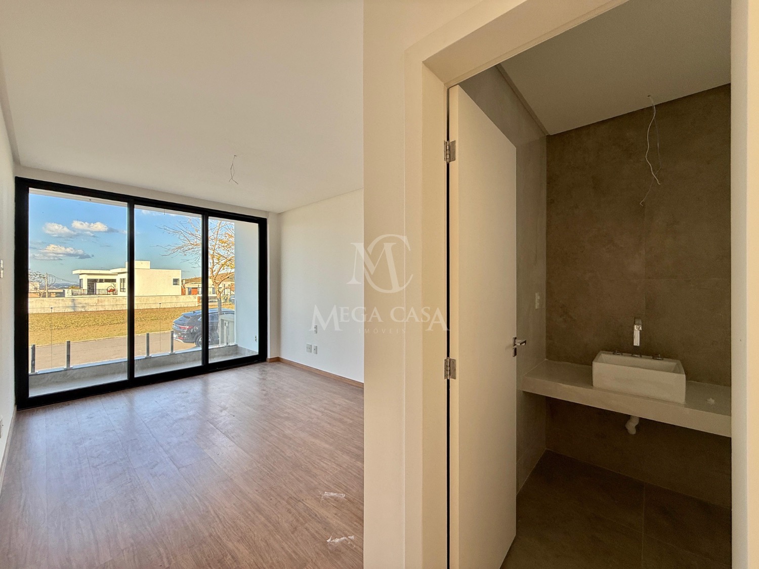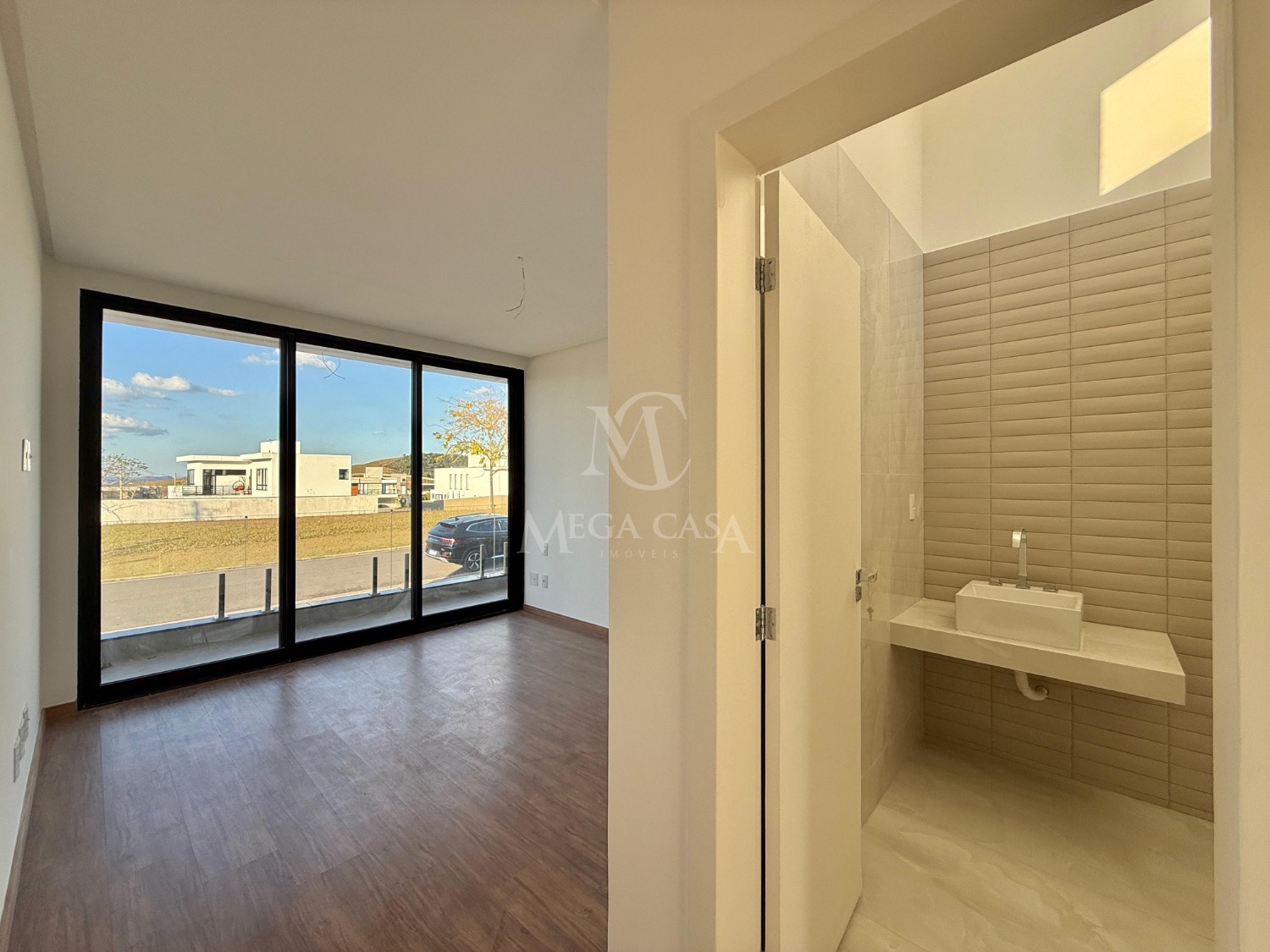 Ao entrar, você será recebido por uma sala ampla com pé direito duplo, ideal para dois ambientes, proporcionando uma atmosfera arejada e iluminada. O lavabo é prático e bem posicionado.
