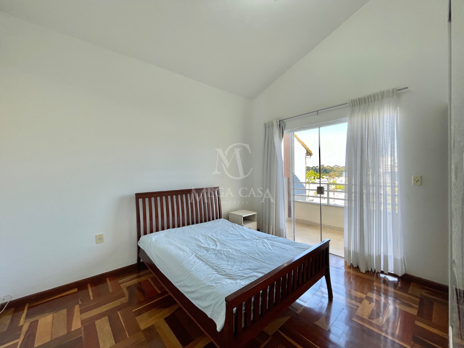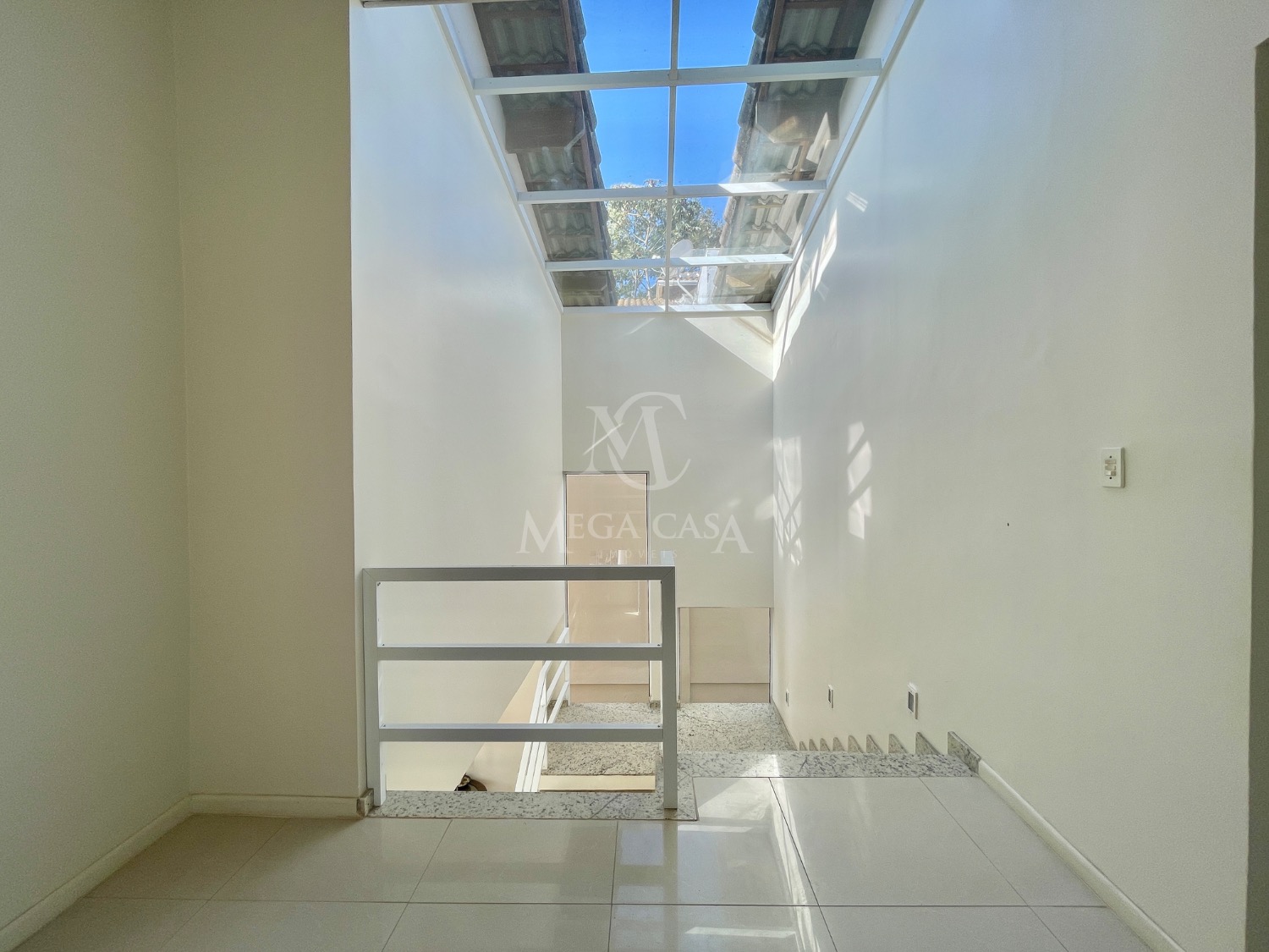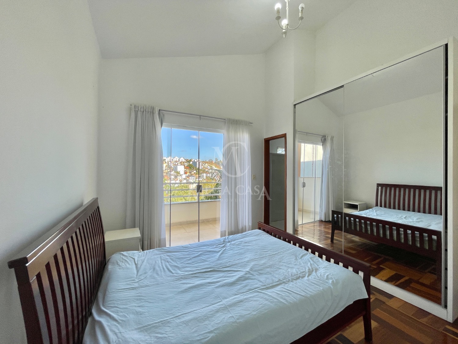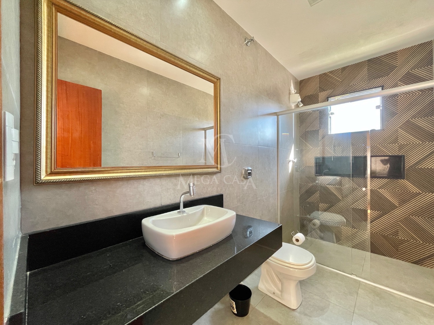 No pavimento superior, o espaço íntimo reúne três suítes, sendo uma delas no estilo canadense. Ideal para proporcionar mais comodidade à família.