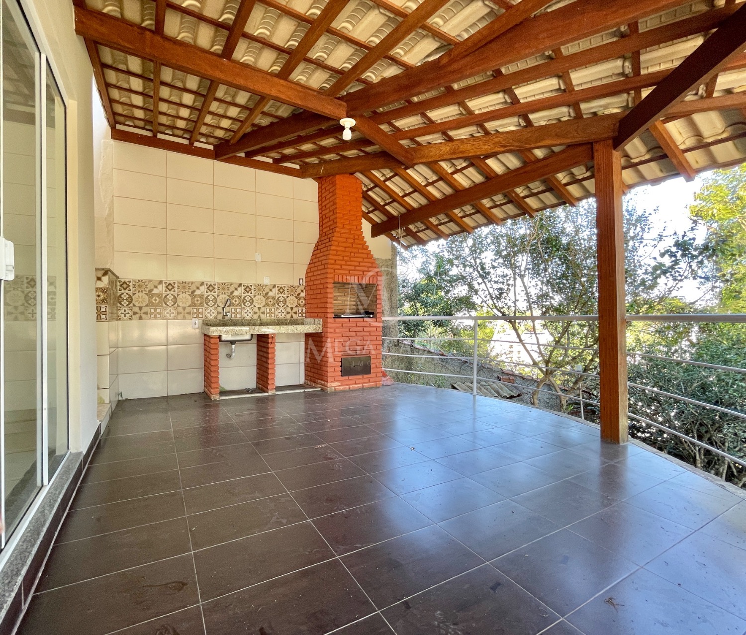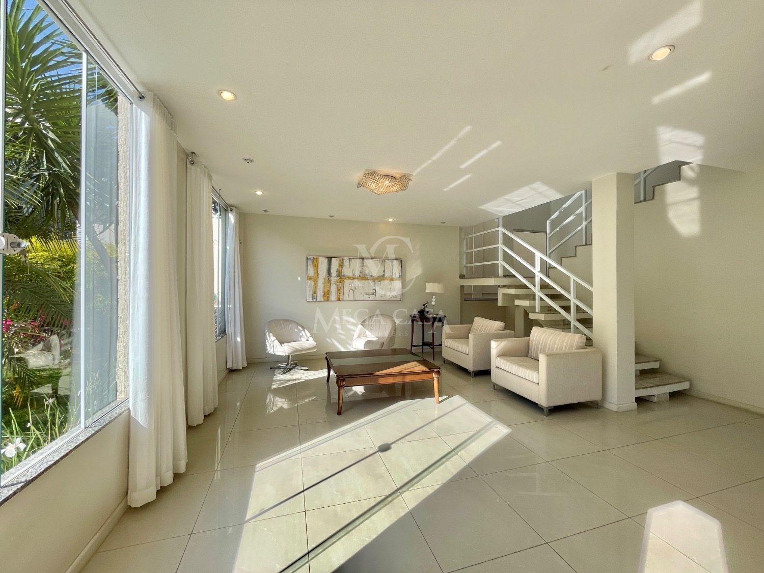 No nível térreo, ficam as duas vagas de garagem, um excelente espaço gourmet com churrasqueira, uma sala de apoio e um banheiro auxiliar, perfeito para receber amigos e familiares.