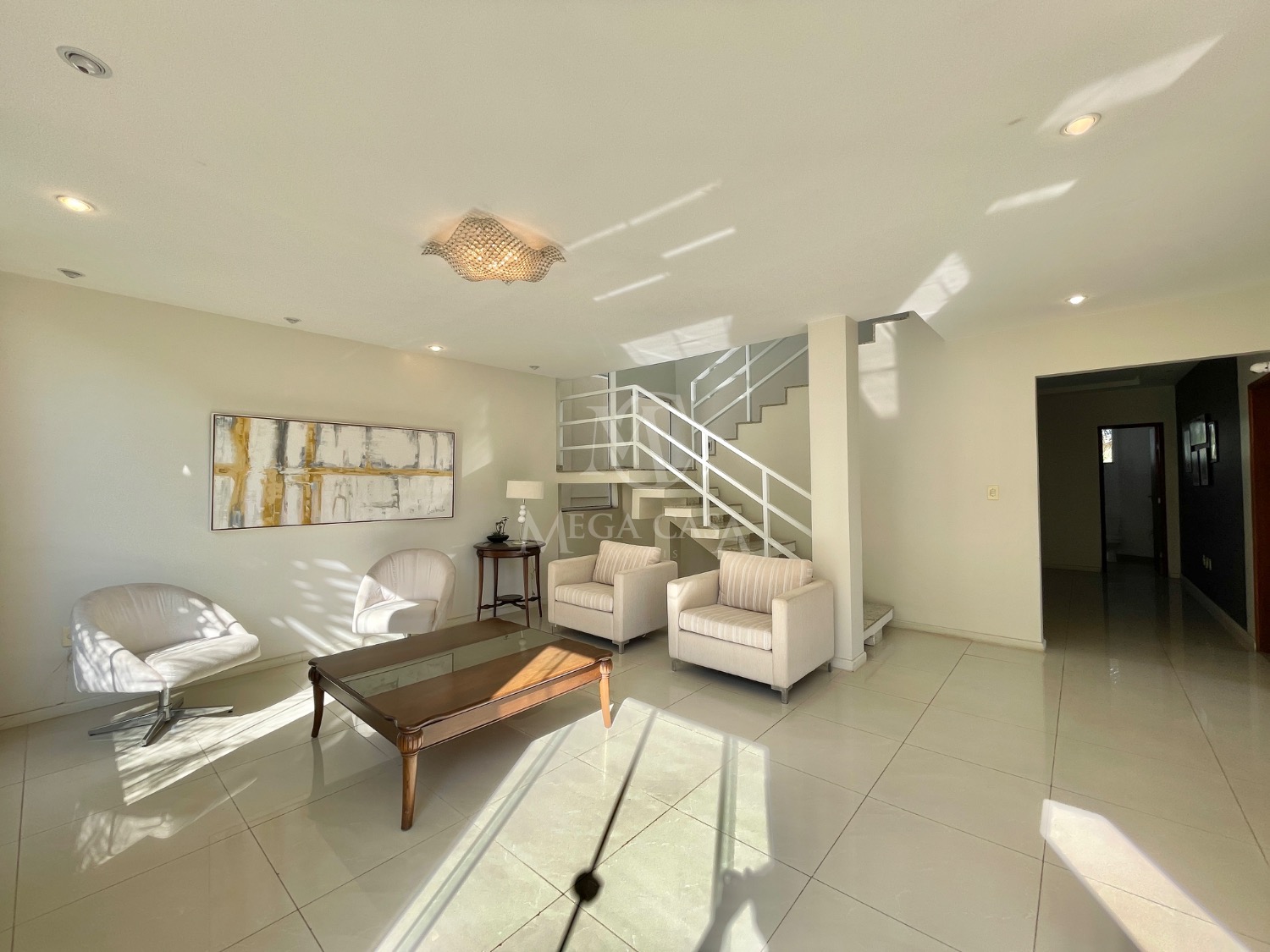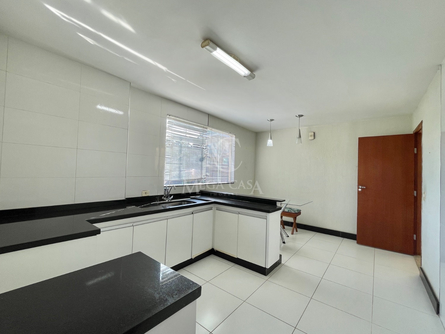 No nível da rua, você é recebido por uma sala ampla e muito iluminada, uma charmosa sala de jantar independente e uma sala de TV que pode ser facilmente revertida para uma suíte. A cozinha possui móveis planejados e está integrada à área de serviço, que conta ainda com lava-louças e uma prática dispensa.