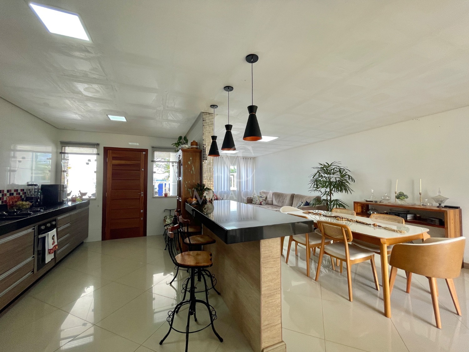 A integração entre sala, cozinha e área gourmet garante praticidade e cria um espaço ideal para reunir família e amigos com conforto e descontração.