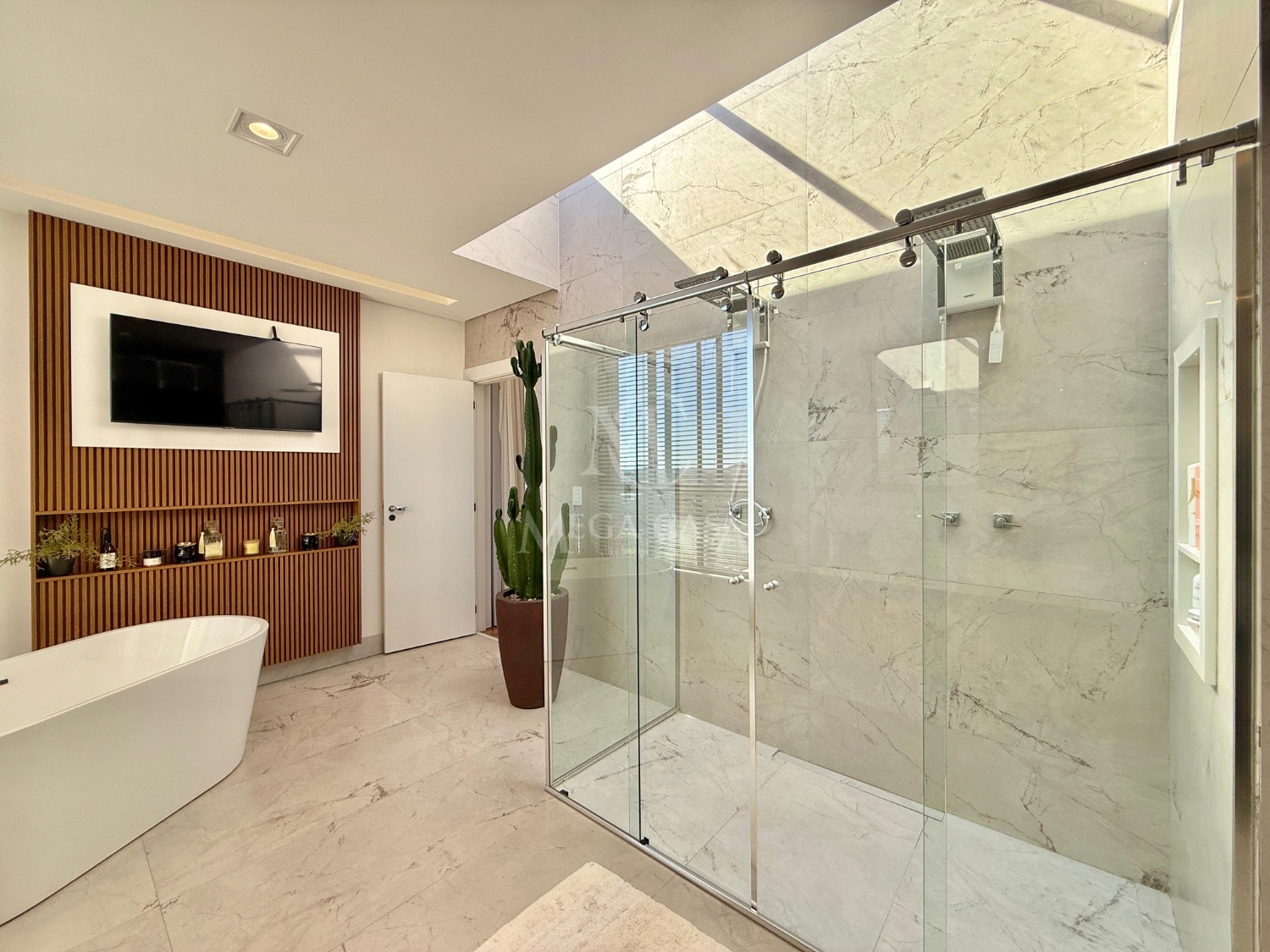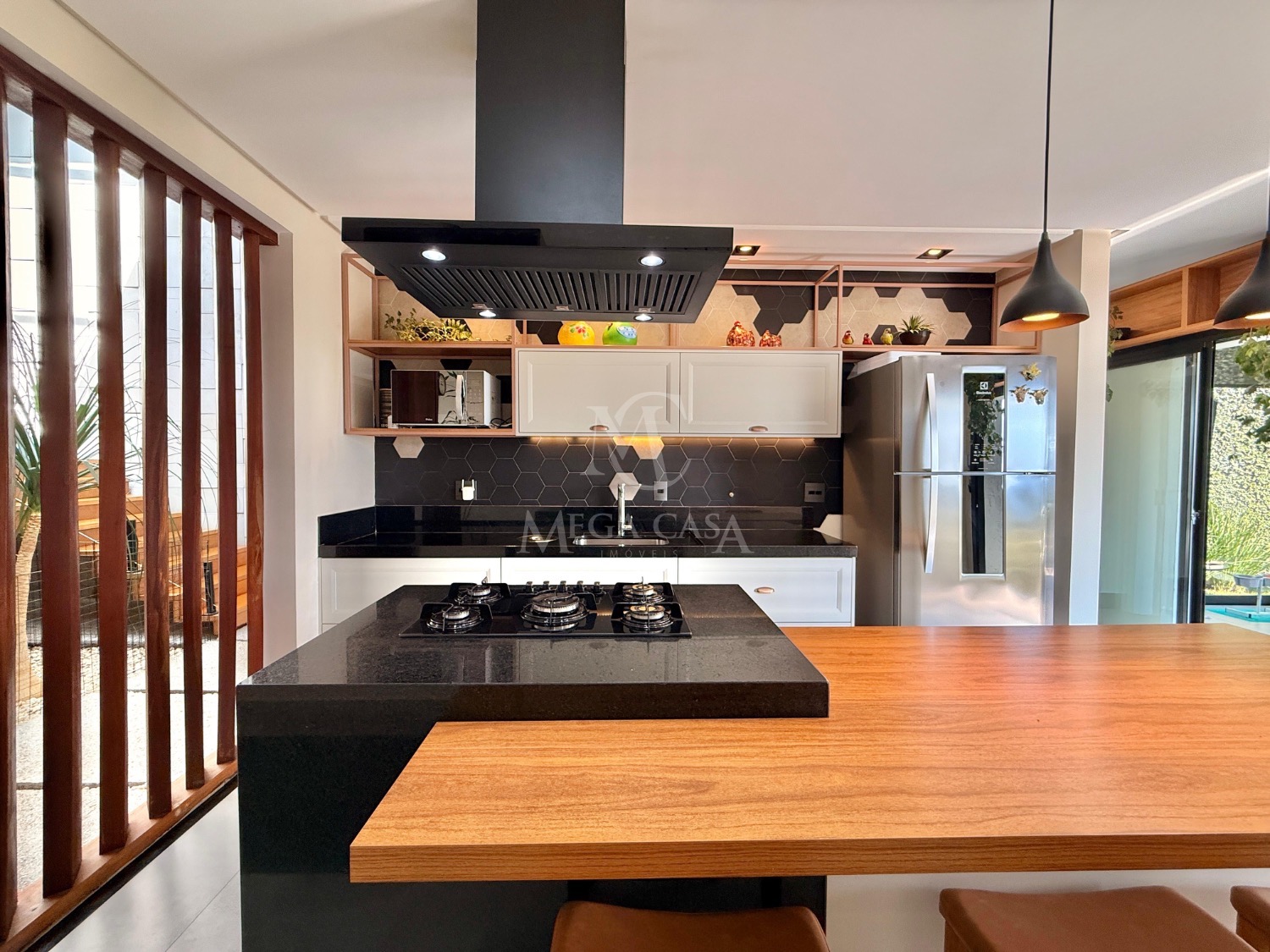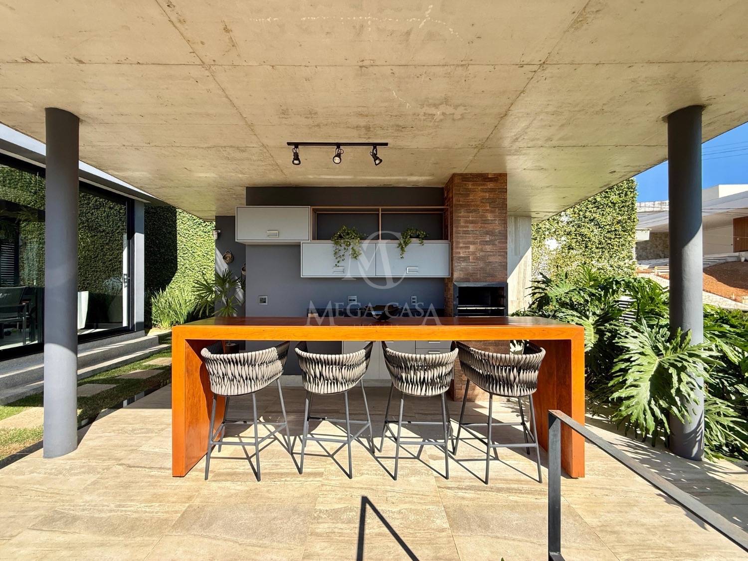 A sala com pé direito duplo impressiona, e a área de lazer foi pensada para momentos inesquecíveis, espaço gourmet integrado, piscina com prainha para relaxar, ambientes amplos e arejados. Mas o grande destaque é a vista, que de qualquer ângulo da casa, você tem o privilégio de apreciar um pôr do sol único, daqueles que transformam todos os dias em ocasiões especiais.