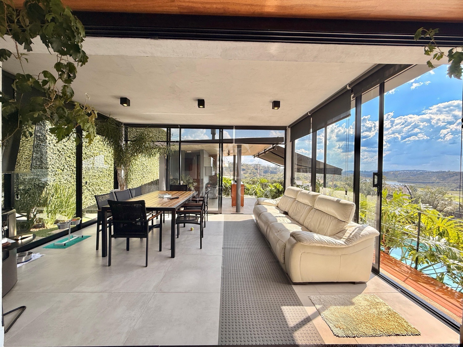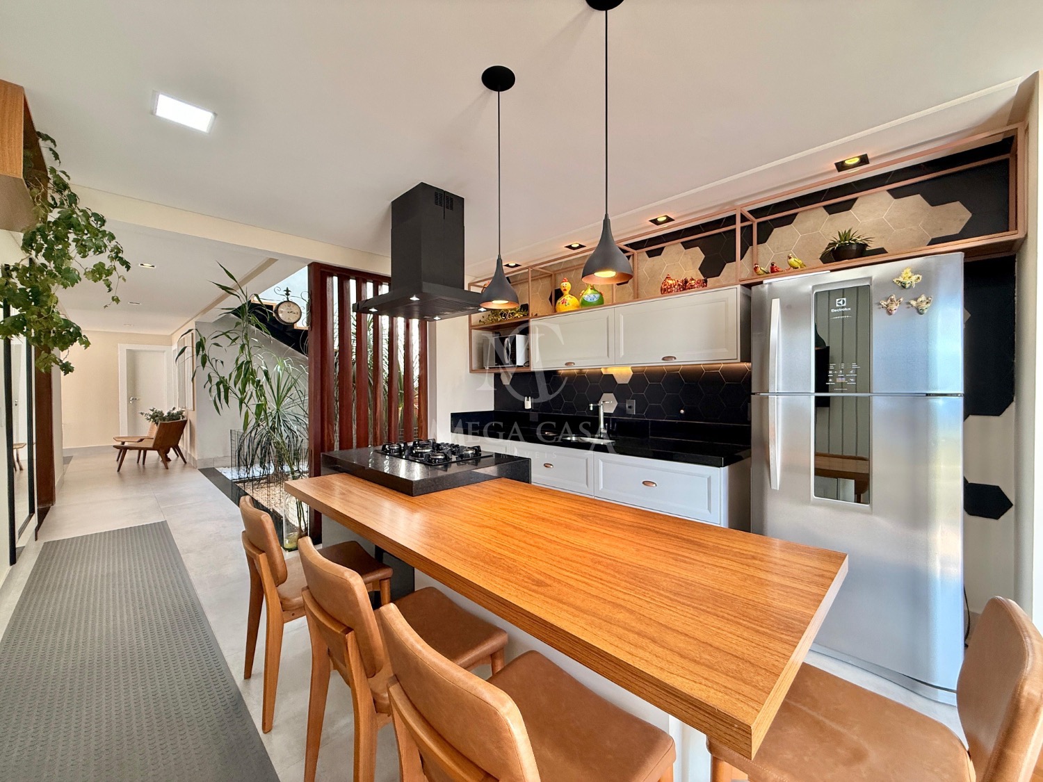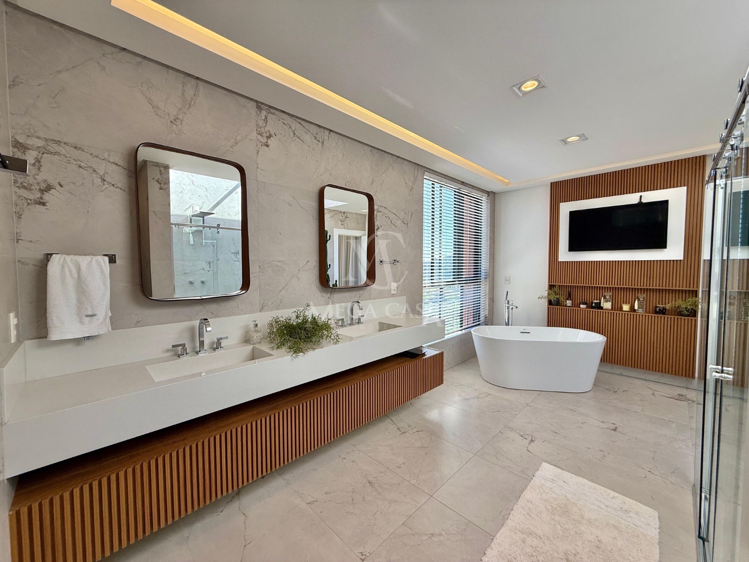 A sala com pé direito duplo impressiona, e a área de lazer foi pensada para momentos inesquecíveis, espaço gourmet integrado, piscina com prainha para relaxar, ambientes amplos e arejados. Mas o grande destaque é a vista, que de qualquer ângulo da casa, você tem o privilégio de apreciar um pôr do sol único, daqueles que transformam todos os dias em ocasiões especiais.