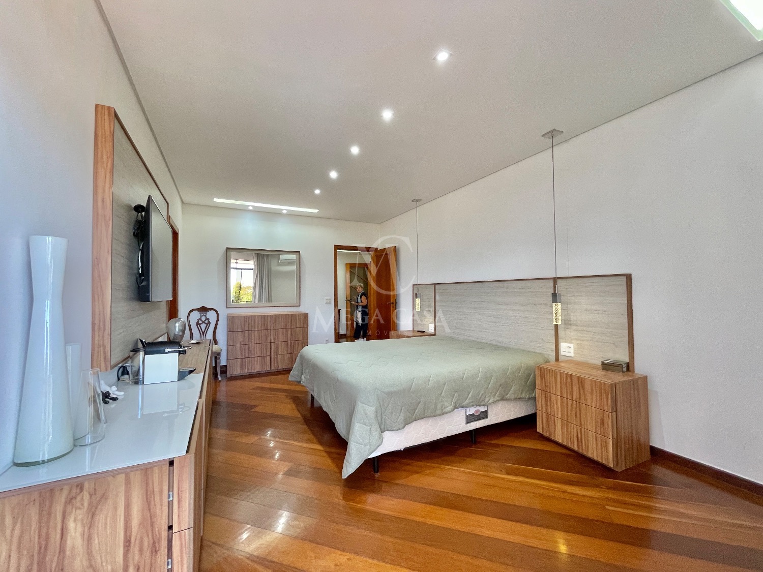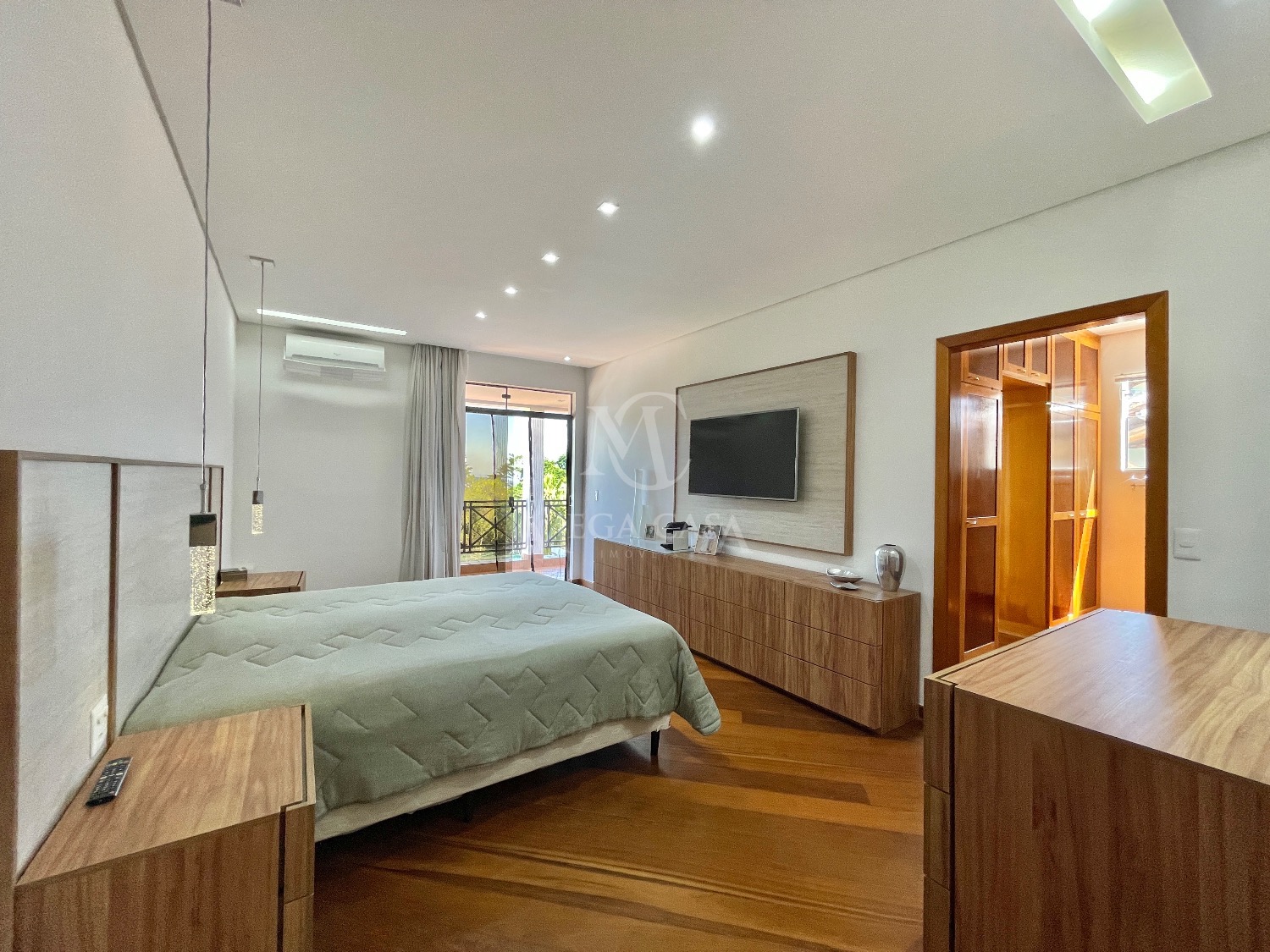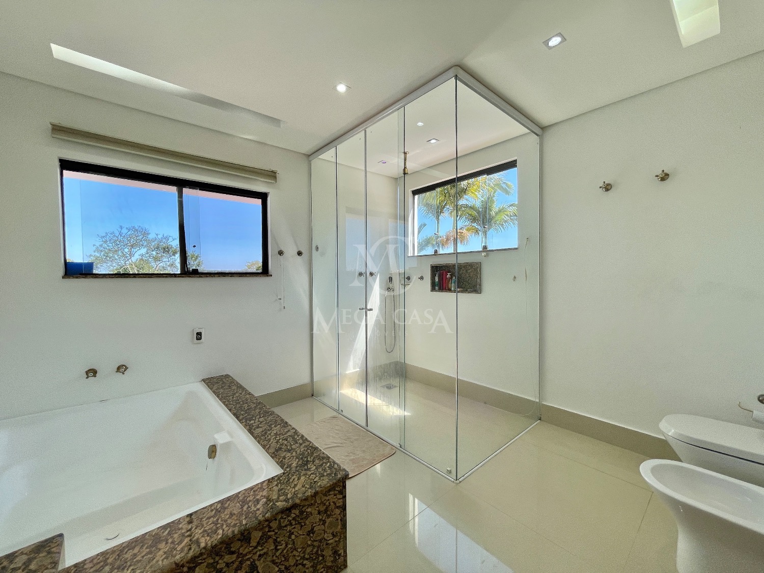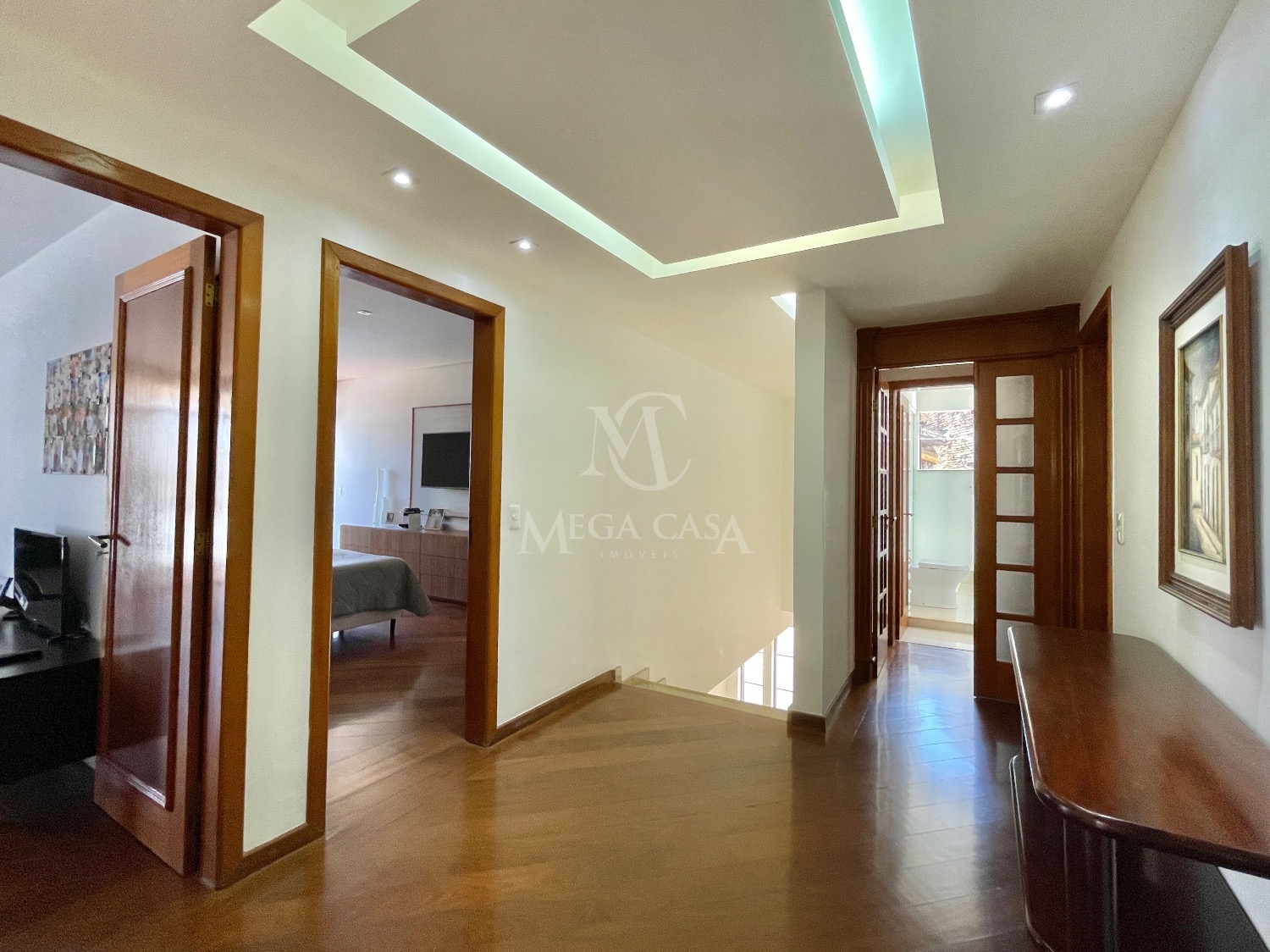 Na parte íntima, a casa oferece 5 quartos, sendo 4 suítes, garantindo muito conforto e privacidade, além de 7 banheiros ao todo.