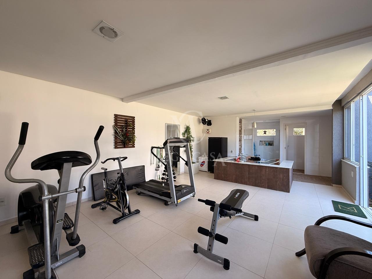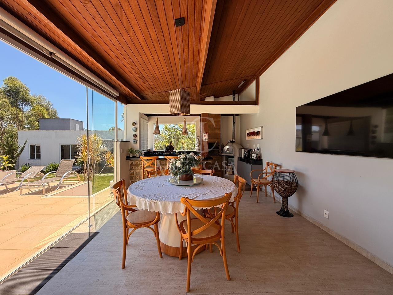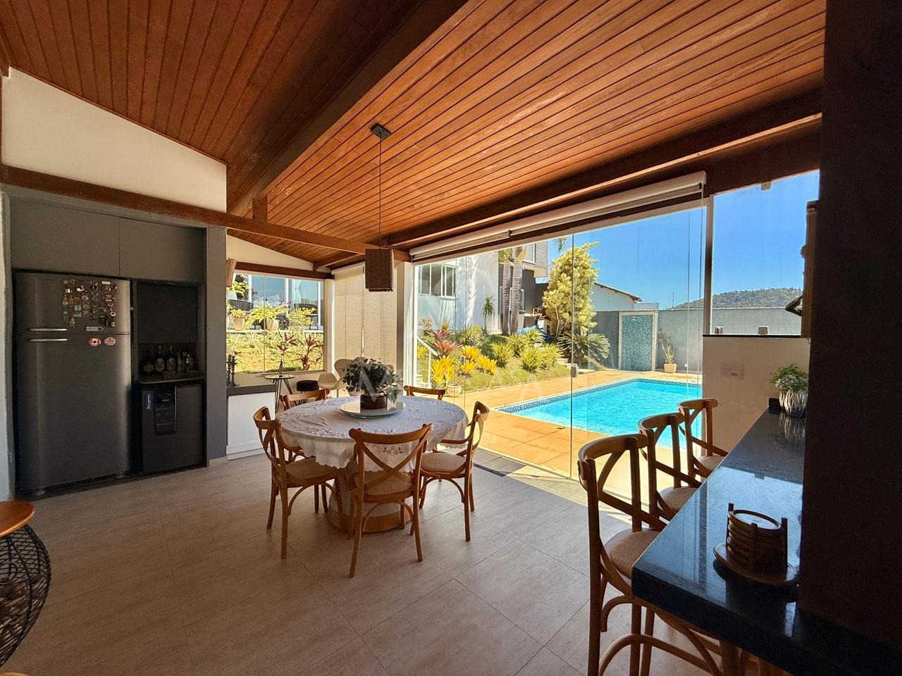 A casa conta com sala ampla para dois ambientes, cozinha moderna com planejados, coifa, cooktop, micro-ondas e forno elétrico, além de área de serviço independente.