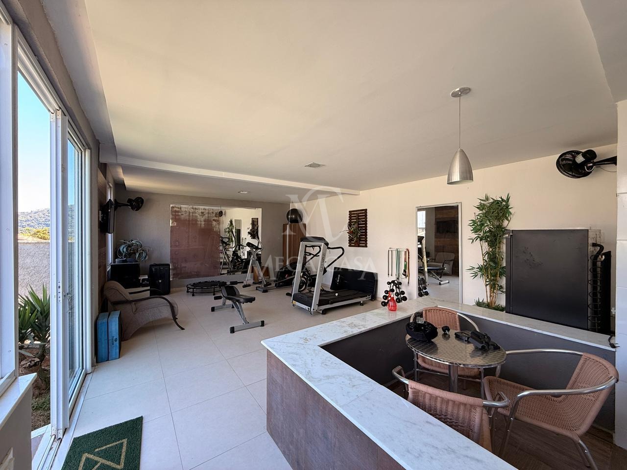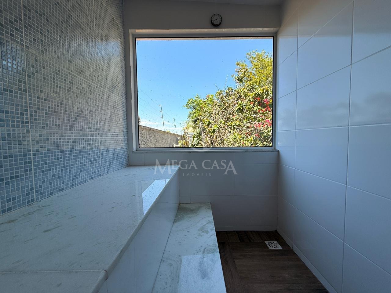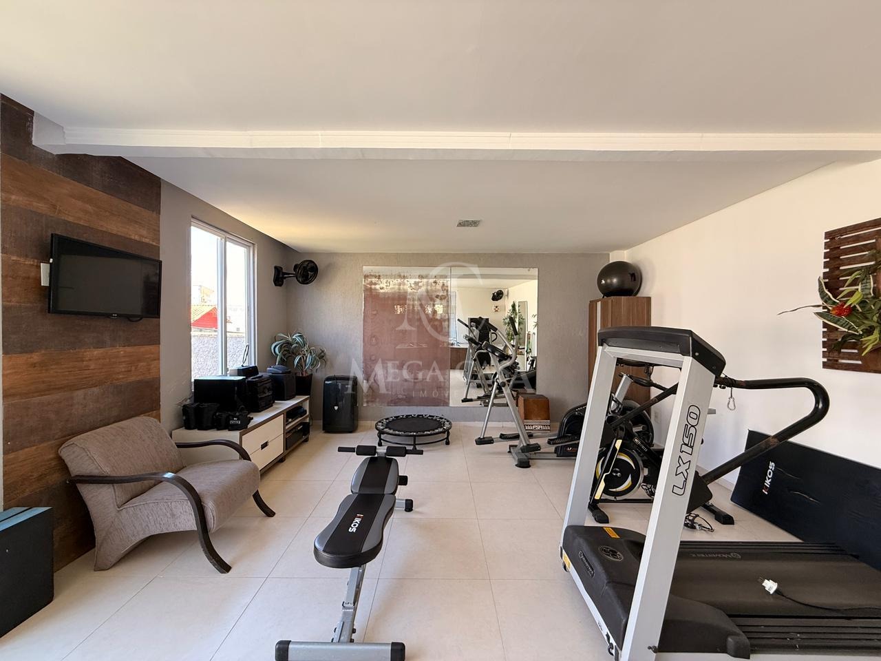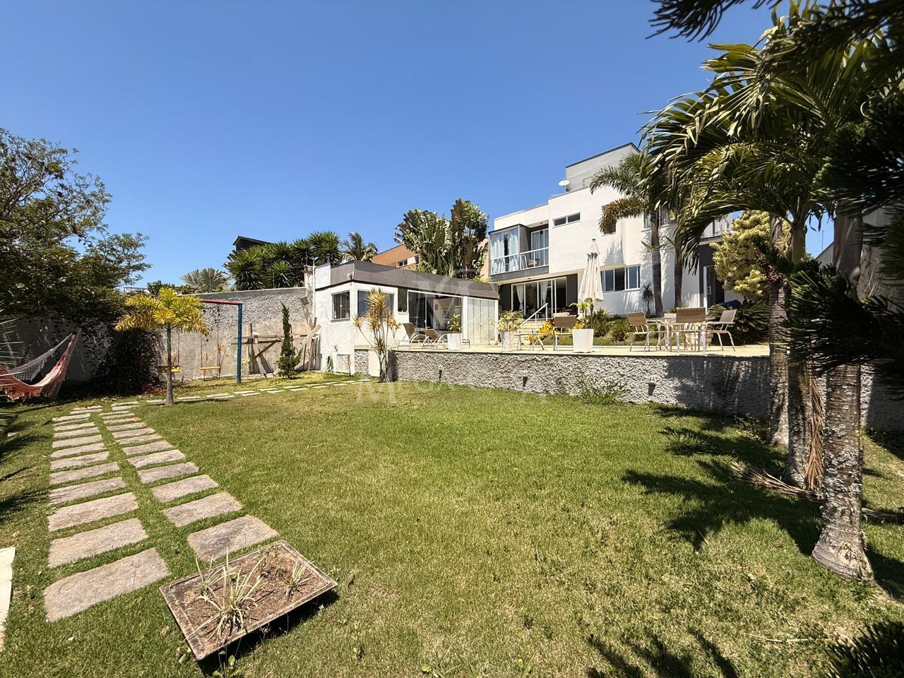 A casa conta com sala ampla para dois ambientes, cozinha moderna com planejados, coifa, cooktop, micro-ondas e forno elétrico, além de área de serviço independente.