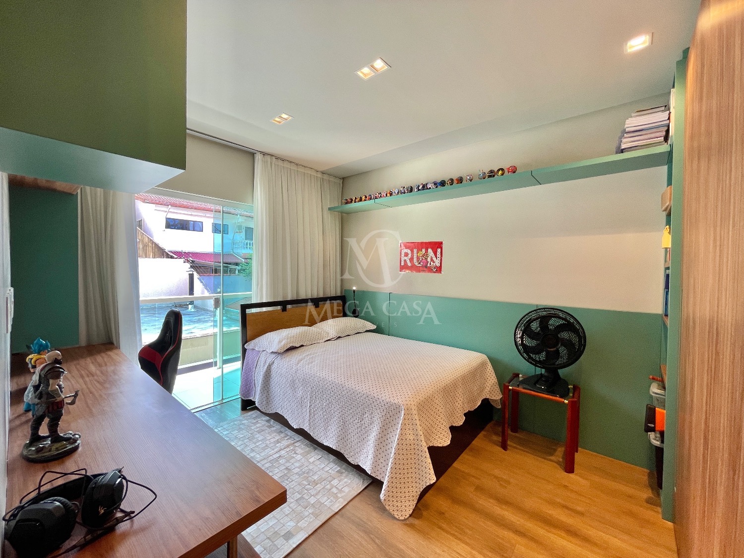 A casa ainda conta com um quarto extra junto à garagem.