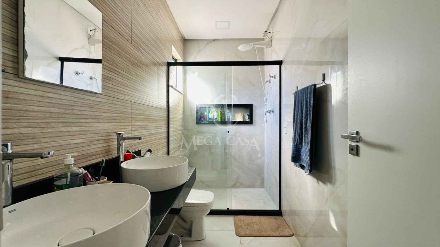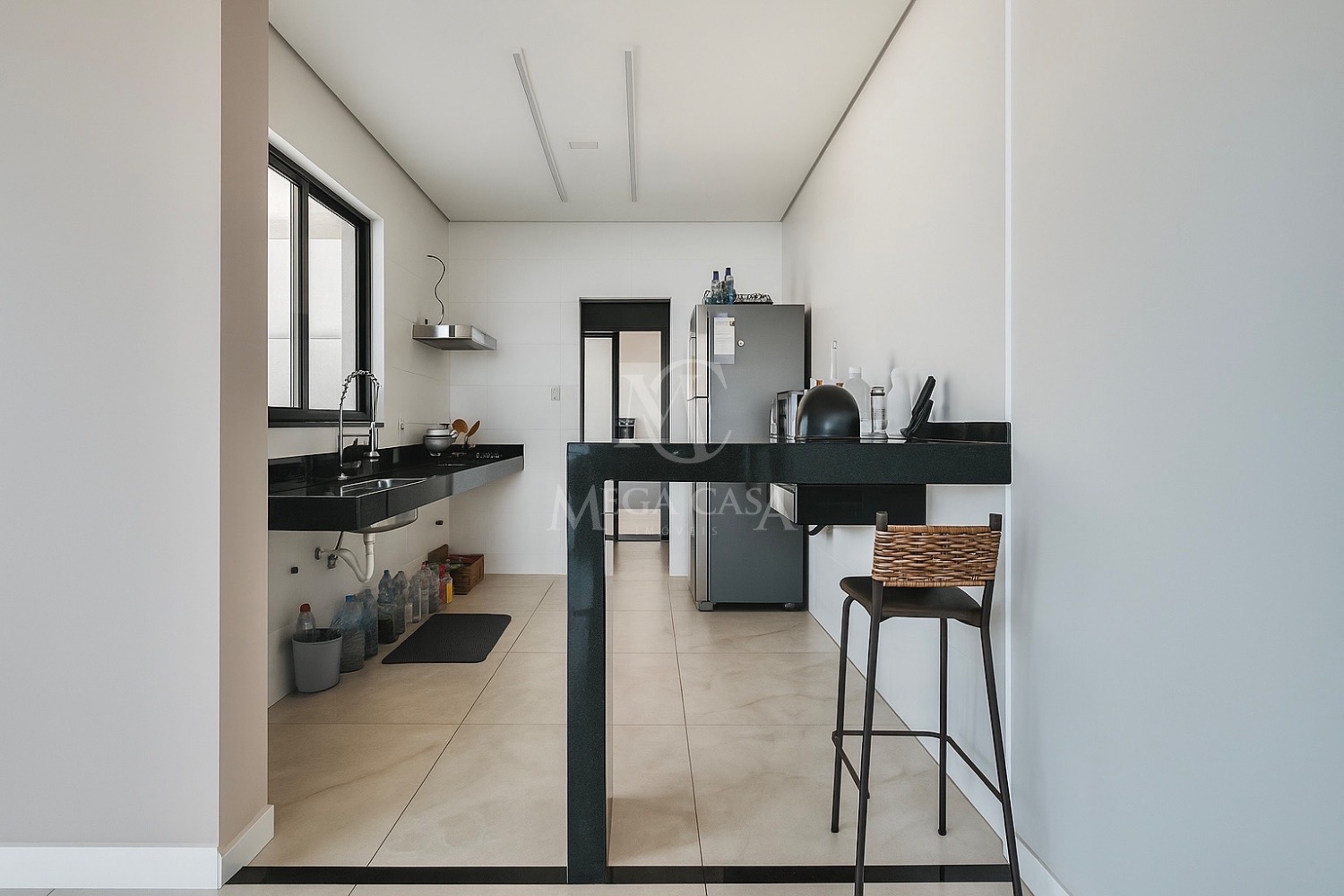 Conta com sala ampla para dois ambientes, integrada à cozinha moderna, lavabo, e três suítes espaçosas, sendo a suíte master com closet.